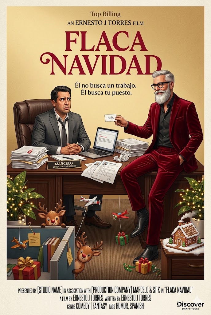 En una oficina corporativa, un serio gerente de mercadeo se enfrenta a una surrealista entrevista con un delgado y moderno Santa Claus, quien postula para su puesto, llevando a una inesperada batalla de ingenio y humor en plena temporada navideña.